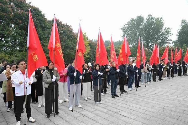 在出发点集结完毕,来自集团24个工会分会的200多名选手,个个精神抖擞,整装待发。双汇发展工会副主席王晓玲致辞,党办主任张博介绍了活动注意事项。上午九点,徒步活动正式开始。活动路线以沙澧河风景区沙桐情人岛为起点沿河堤进行,全程约6.2公里,沿途设置2个补给站进行能量补给,同时漯河市中心医院为本次活动提供医疗保障,确保活动安全顺利进行。